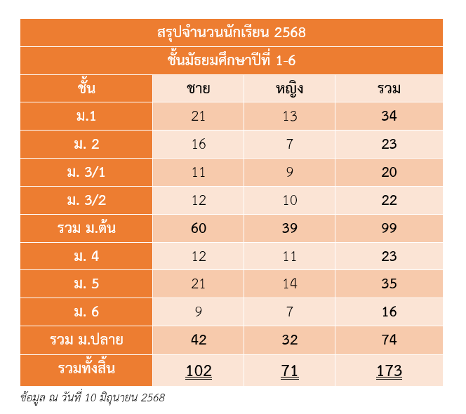 รวมจำนวนนักเรียนทั้งหมด 173 คน