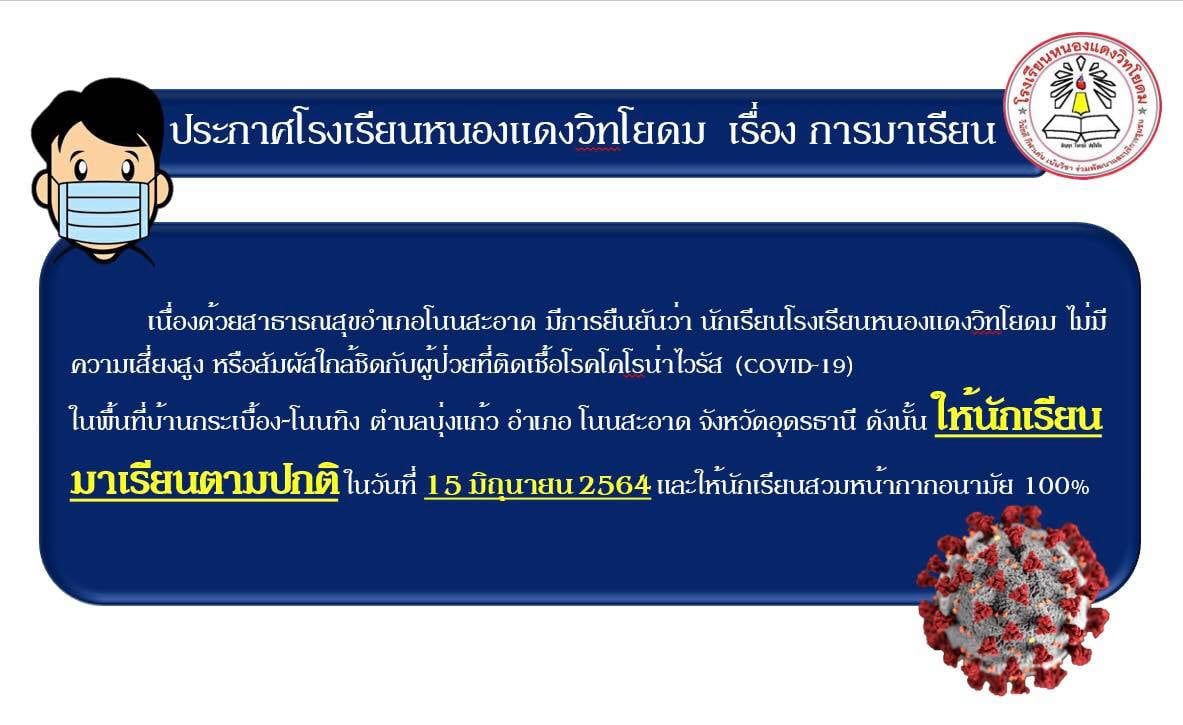 ประกาศให้นักเรียนมาเรียนตามปกติ ในวันที่ 15 มิถุนายน 2564