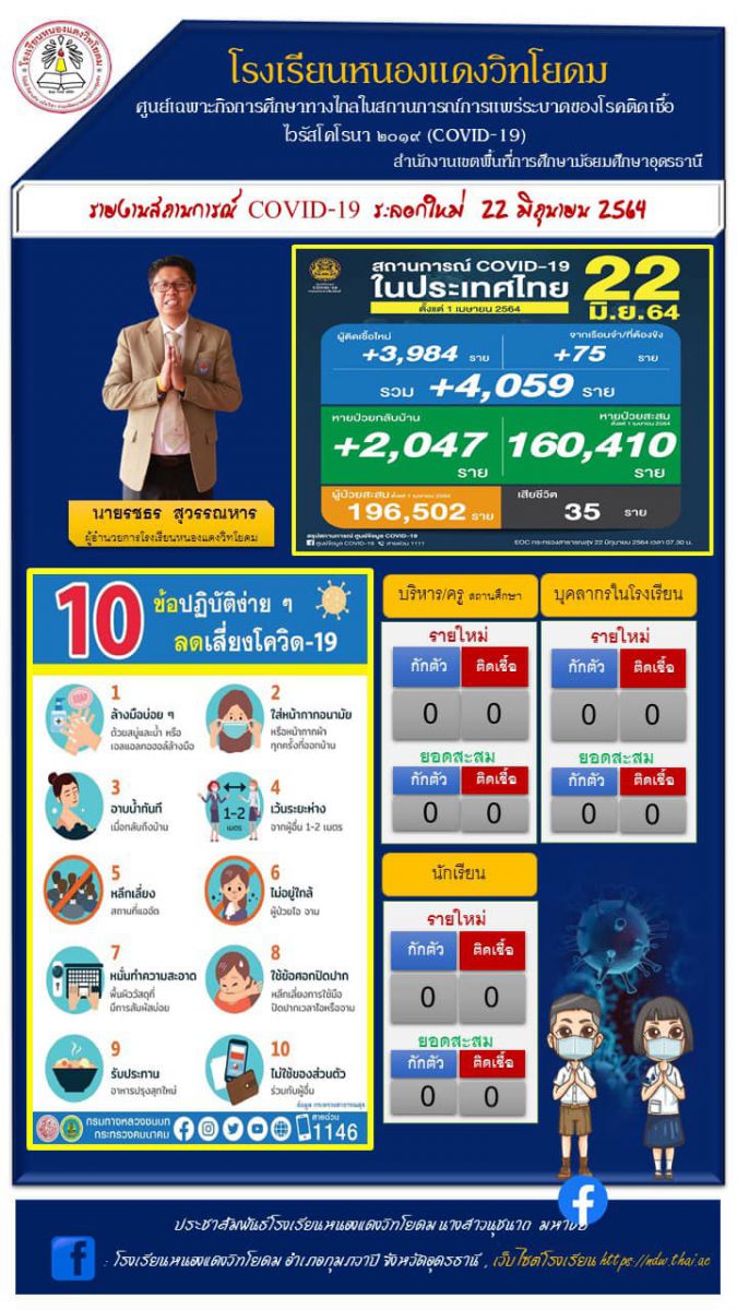 รายงานสถานการณ์ COVID 19ระลอกใหม่ ประจำวันที่ 22 มิถุนายน 2564