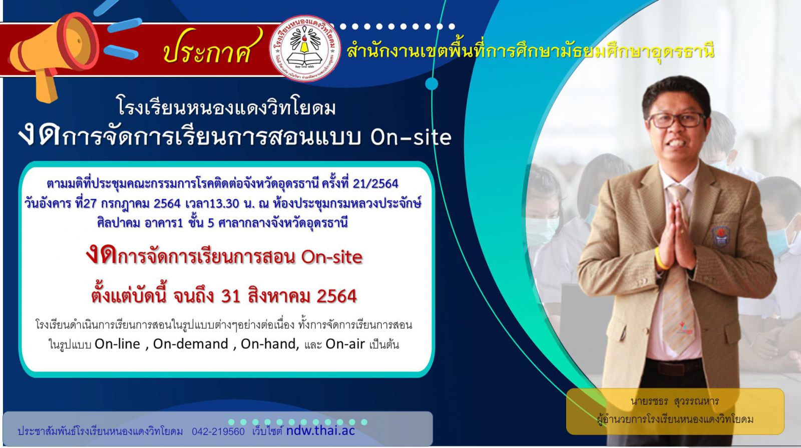งดการจัดการเรียนการสอนที่โรงเรียน (On site) ถึง 31 สิงหาคม 2564