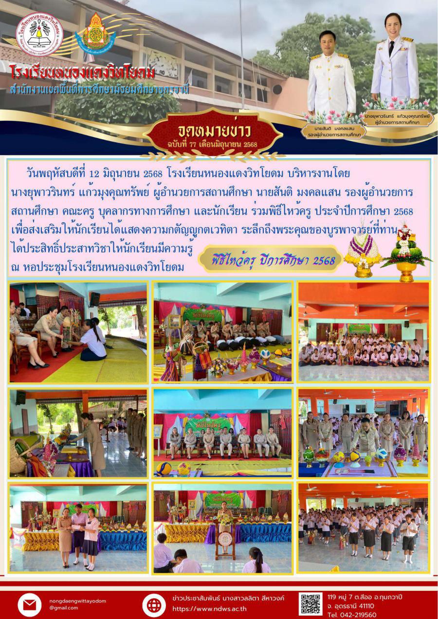 นโยบายไม่รับของขวัญ (No Gift Policy) โรงเรียนหนองแดงวิทโยดม