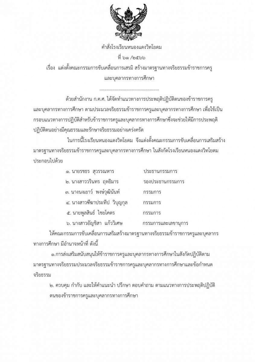 การขับเคลื่อนจริยธรรมของโรงเรียนหนองแดงวิทโยดม
