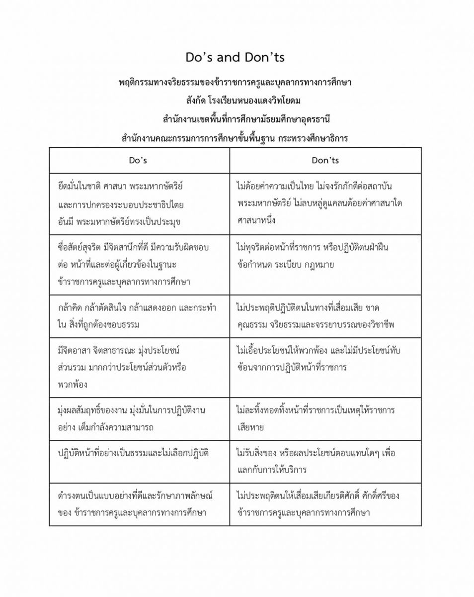 นโยบายไม่รับของขวัญ (No Gift Policy) โรงเรียนหนองแดงวิทโยดม